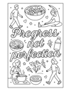 - 35+ coloring pages of relatable wellness with positive affirmations to help keep you inspired